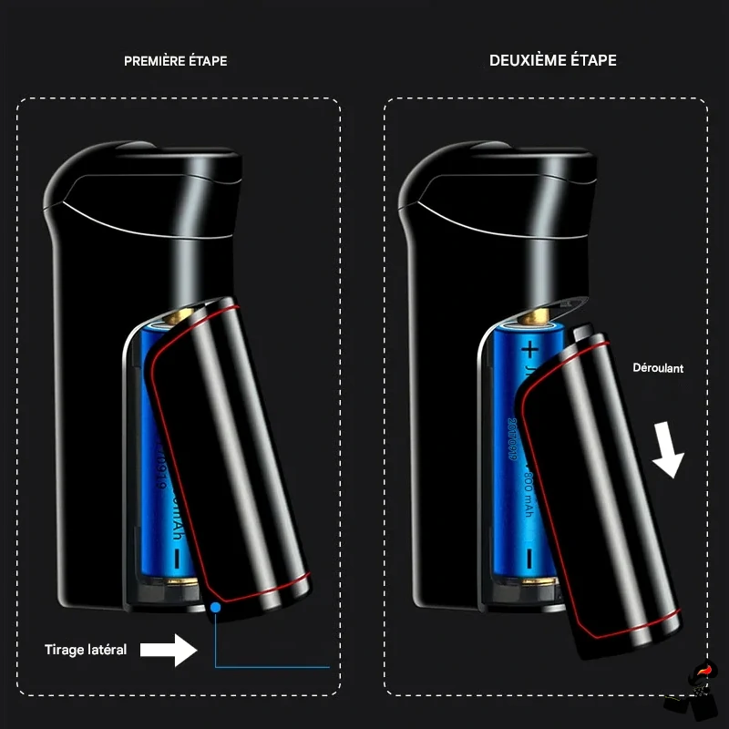 Équipé d’une batterie JH14500 3,7 V 800 mAh, ce briquet peut allumer jusqu’à 10 paquets de cigarettes sur une seule charge. La séparation en deux étapes permet de retirer la batterie facilement, facilitant le passage en contrôle de sécurité lors de voyages.