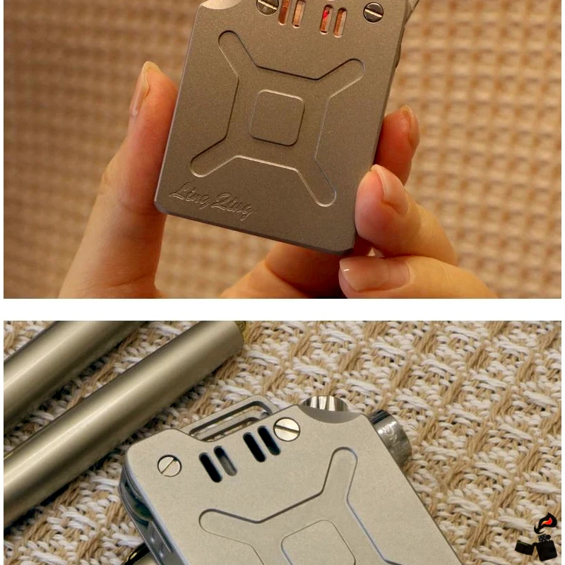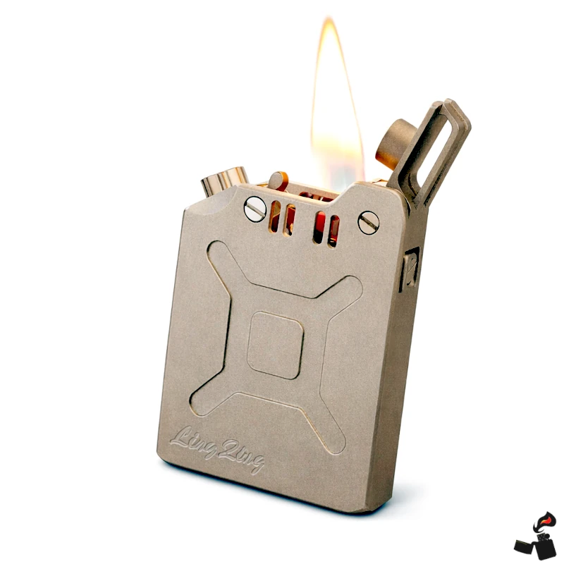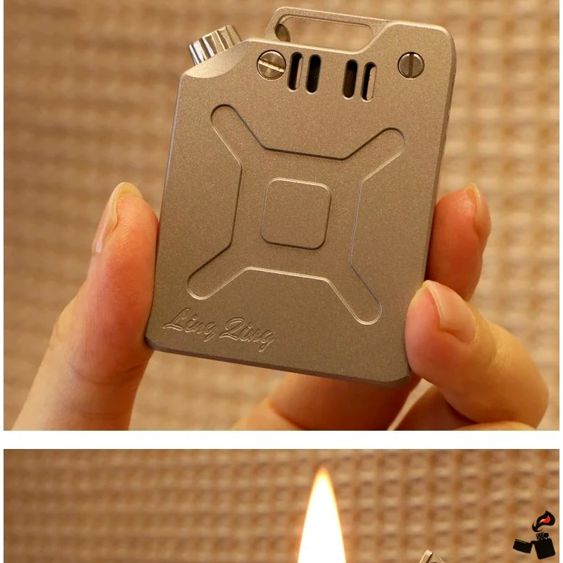 Briquet à essence mécanique en acier inoxydable, allumage par catapulte, format compact et conception CNC durable.