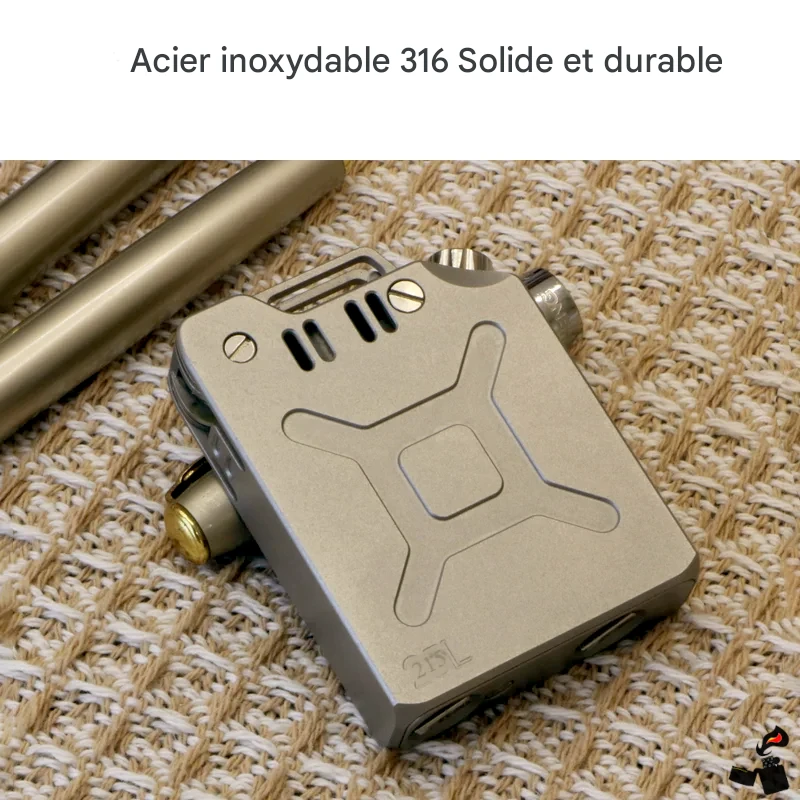 Briquet à essence usiné CNC avec corps en acier inoxydable. Vis de remplissage en acier inoxydable 316, résistante à la corrosion et à l’usure. Allumage mécanique par catapulte avec bouton d’auto-verrouillage intégré pour un déclenchement sécurisé. Réservoir interne de 4 ml utilisant un coton dégraissé haute densité pour une combustion stable au kérosène standard. Compatible avec pierre standard 2,3 mm (type AA). Pierre de rechange intégrée dans la vis de remplissage. Format compact, masse équilibrée, excellente rigidité structurelle. Conçu pour un usage durable et répétable. Une excellente prise en main et une sensation de solidité immédiate. Un objet de caractère, pensé pour durer.